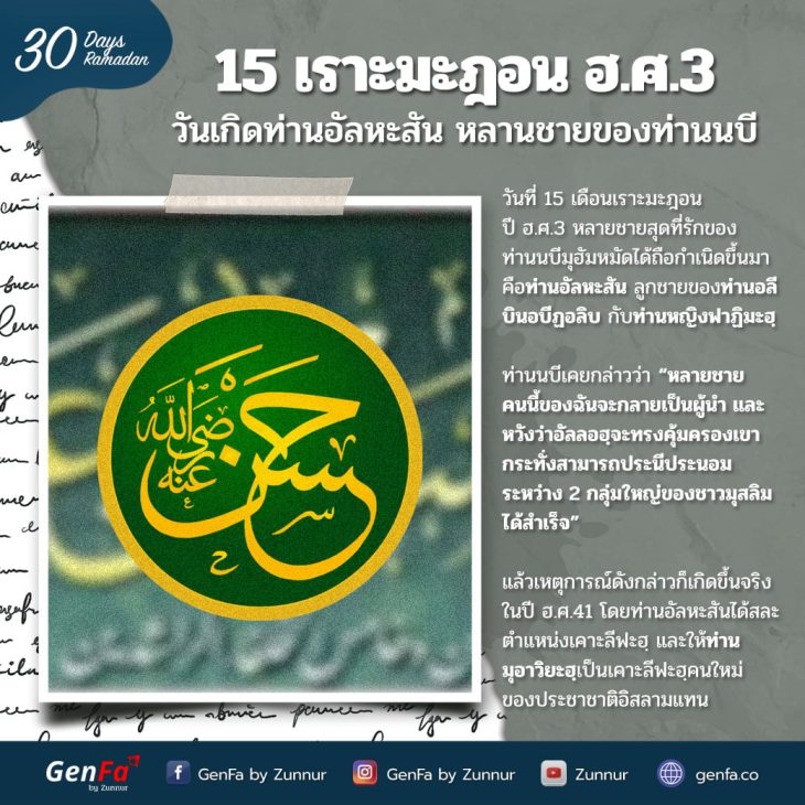 :: 15 เราะมะฎอน ฮ.ศ.3 : วันเกิดท่านอัลหะสัน หลานชายของท…