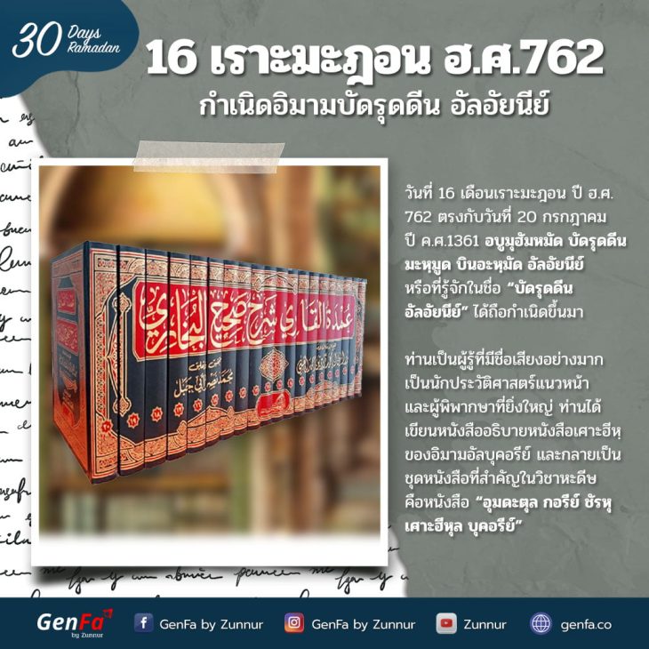 :: 16 เราะมะฎอน ฮ.ศ.762 : กำเนิดอิมามบัดรุดดีน อัลอัยนี…