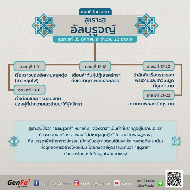 :: แผนที่อัลกุรอาน :: สรุปภาพรวมสูเราะฮฺที่ 85 : อัลบุร…