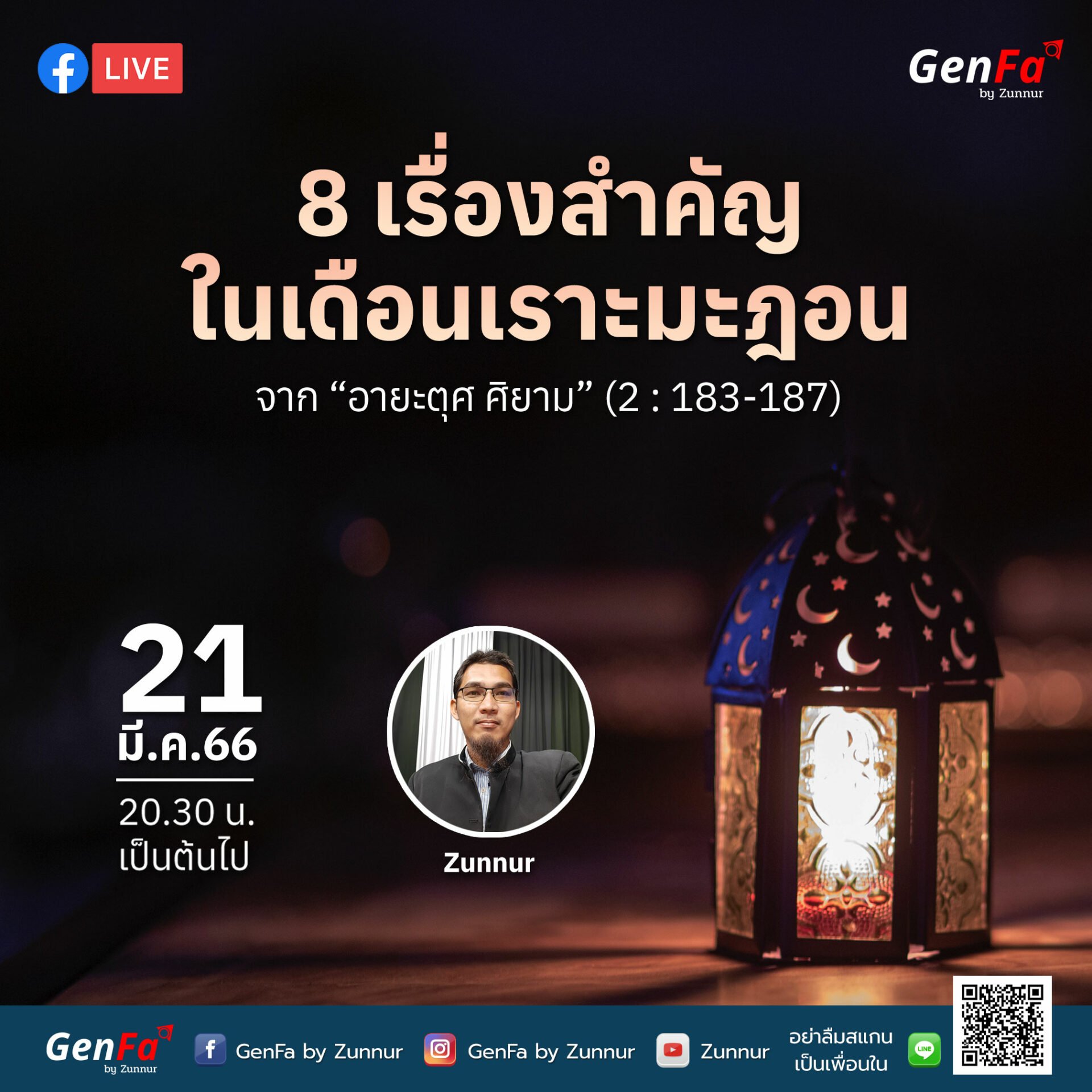 หัวข้อ “8 เรื่องสำคัญในเดือนเราะมะฎอน : จาก ‘อายะตุศศิยาม’ (2 : 183-187)”