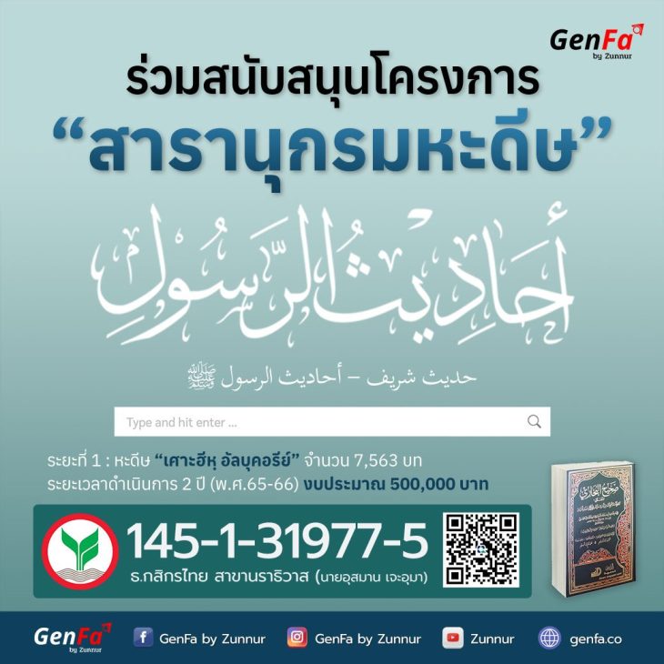 ร่วมสนับสนุนโครงการ สารานุกรมหะดีษ (ระยะที่ 2) โครงการจ…