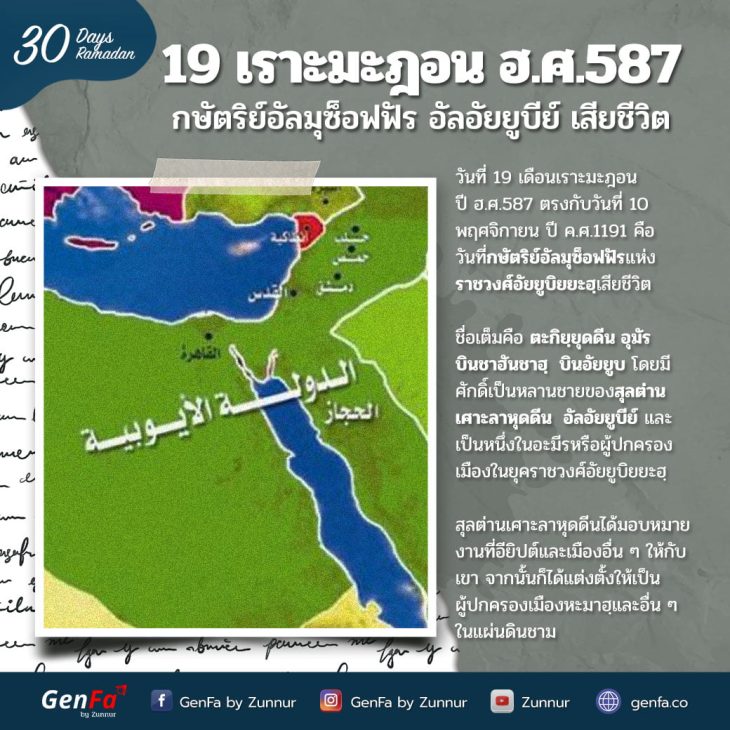 :: 19 เราะมะฎอน ฮ.ศ.587 : กษัตริย์อัลมุซ็อฟฟัร อัลอัยยู…