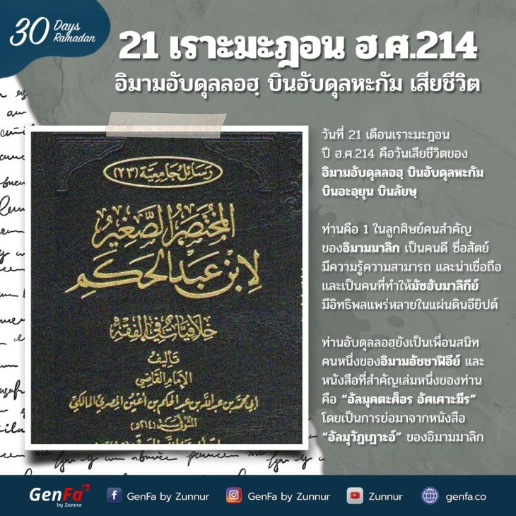 :: 21 เราะมะฎอน ฮ.ศ.214 : อิมามอับดุลลอฮฺ บินอับดุลหะกั…