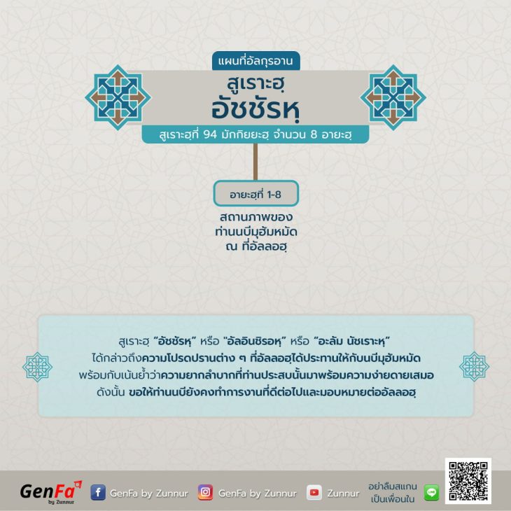 แผนที่อัลกุรอาน : สูเราะฮฺที่ 94 อัชชัรหฺ