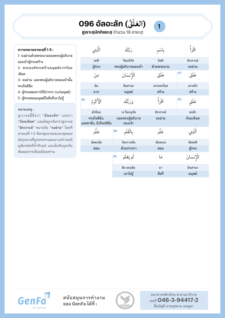 อัลกุรอาน : คำต่อคำ สูเราะฮฺที่ 96 : อัลอะลัก **…