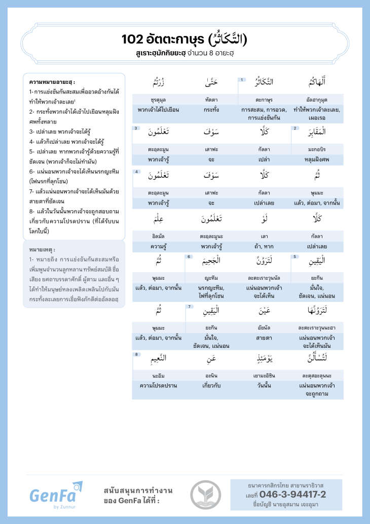 อัลกุรอาน : คำต่อคำ สูเราะฮฺที่ 102 : อัตตะกาษุร…