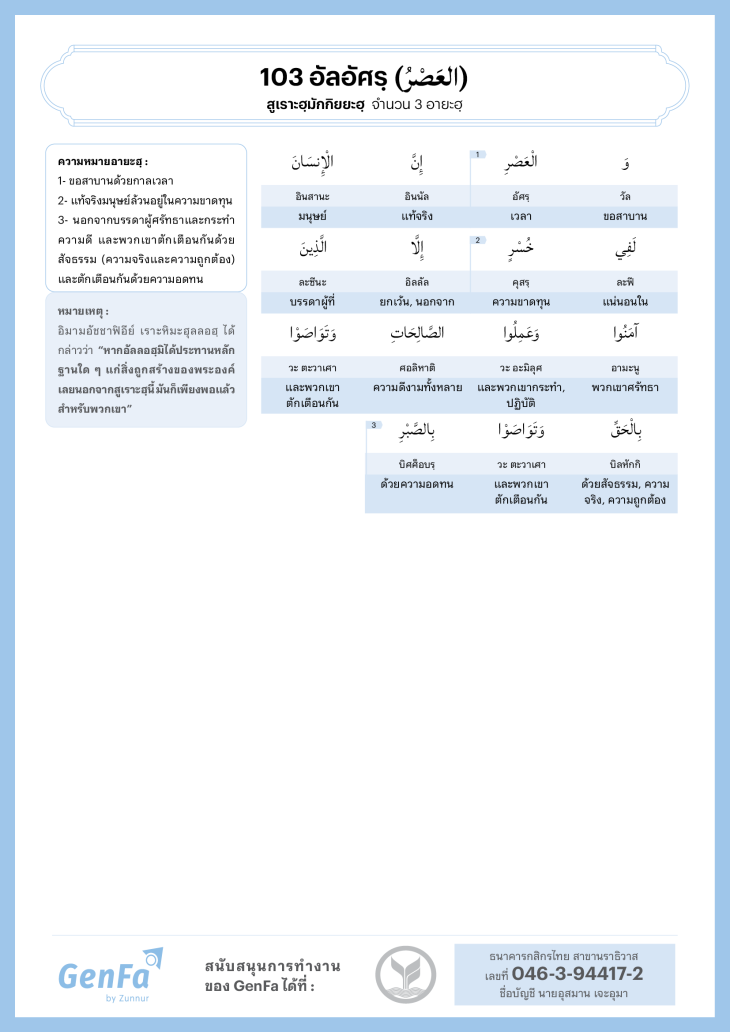 อัลกุรอาน : คำต่อคำ สูเราะฮฺที่ 103 : อัลอัศรฺ *…