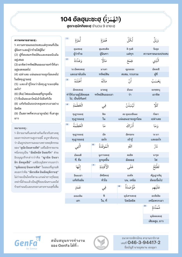 อัลกุรอาน : คำต่อคำ สูเราะฮฺที่ 104 : อัลฮุมะซะฮ…