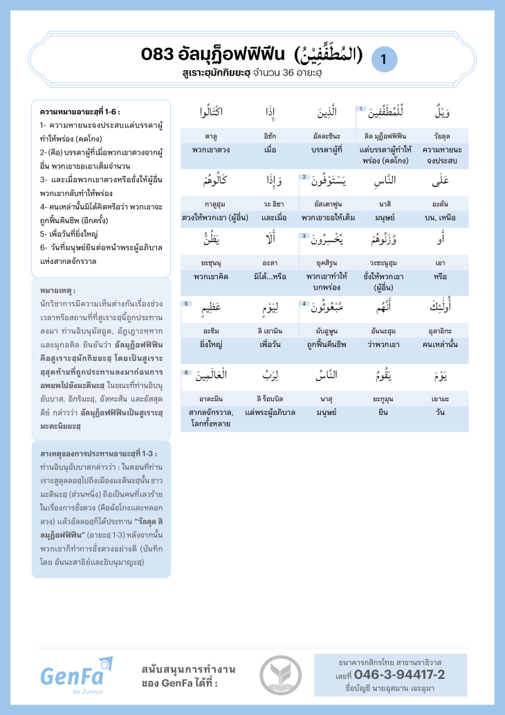 อัลกุรอาน : คำต่อคำ สูเราะฮฺที่ 83 : อัลมุฏ็อฟฟิ…