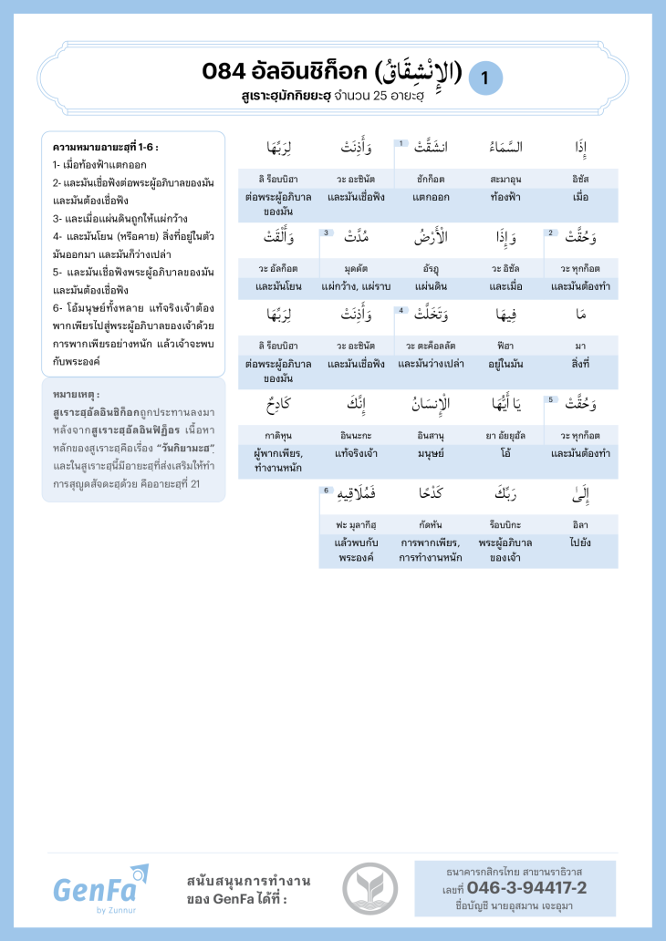 อัลกุรอาน : คำต่อคำ สูเราะฮฺที่ 84 : อัลอินชิก็อก *****…
