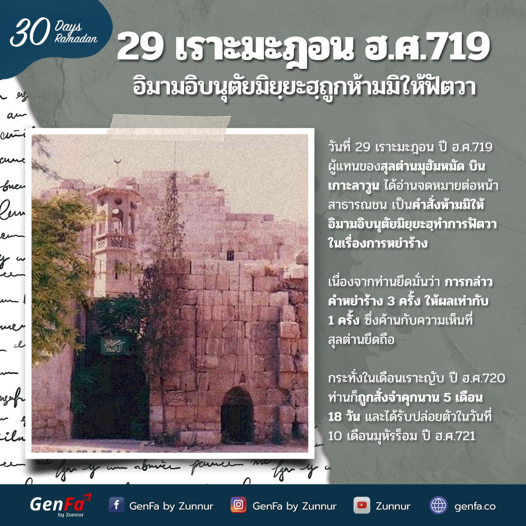 :: 29 เราะมะฎอน ฮ.ศ.719 : อิมามอิบนุตัยมิยฺยะฮฺถูกห้ามมิให้ฟัตวา ::
