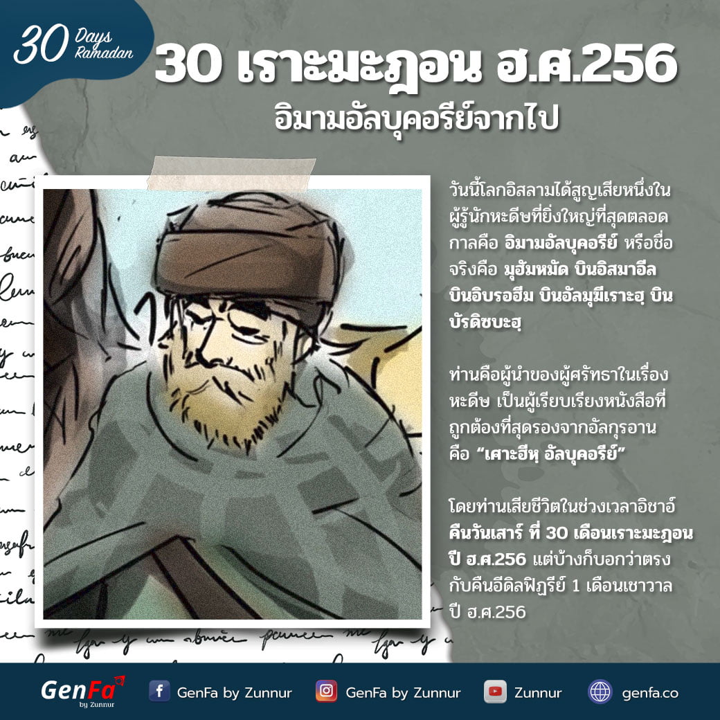 วันนี้โลกอิสลามได้สูญเสียหนึ่งในผู้รู้นักหะดีษที่ยิ่งใหญ่ที่สุดตลอดกาลคือ “อิมามอัลบุคอรีย์” หรือชื่อจริงคือ “มุฮัมหมัด บินอิสมาอีล บินอิบรอฮีม บินอัลมุฆีเราะฮฺ บินบัรดิซบะฮฺ”